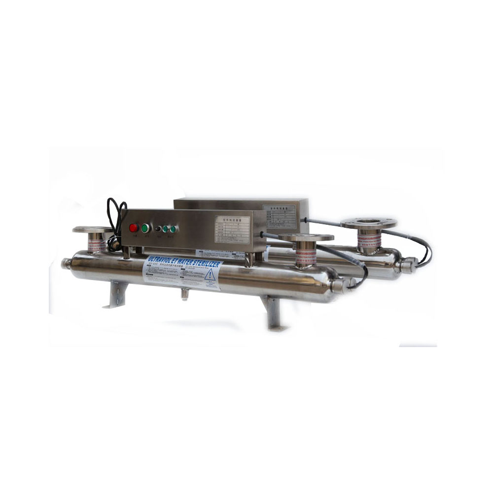 冠宇紫外线消毒器集光学、微生物学、机械、化学、电子、流体力学等综合科学为一体。采用进口及优质国产的高效率、高强度和长寿命的UV-C紫外光发生装置所产生的UV-C紫外光照射流水。当水中的细菌、病毒等受到足剂量的UV-C紫外光(波长253.7nm)照射后。其细胞DNA及细胞结构被破坏,细胞再生无法进行,从而达到水的消毒和净化效果。而波长185nm的紫外光还可以分解水中的有机物分子,产生氢基自由基并将水中有机物分子氧化为CO2和H2O,并达到去除TOC的效果。