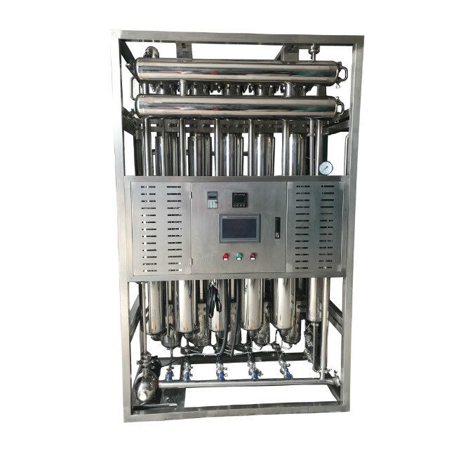 ▲列管五效蒸馏水机新型列管五效蒸馏水机是我公司科研人员在大连理工大学林教授指导下结合国内外先进蒸馏机械开发研制的新型制取蒸馏水设备。由于它造型美观,结构合理,节汽省水,操作简便,深受用户赞誉。广泛应用于医院,药厂,化工科研单位,制取蒸馏水。本蒸馏水机用于生产注射用蒸馏水,其水质符合中华人民共和国药典有关注射用蒸馏水的各项规定。该设备为我公司自主生产,外形大气美观,为304或316全不锈钢制作,涉水部位为316L不锈钢材质,并且不用添加额外冷却水,每年为客户省水在10吨以上,设计合理,蒸馏水出水电导率能达到双零(即小于0.1),大大超过国家0.2的合格蒸馏水标准