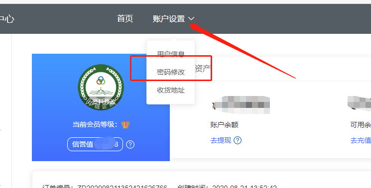 第一步:点击顶部“账户设置”里面的“密码修改”