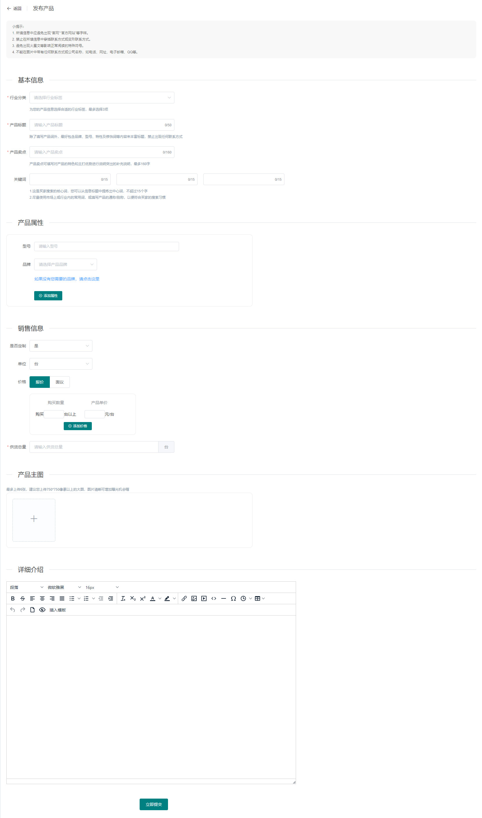 第二步:填写商品基本信息,点击“立即提交”