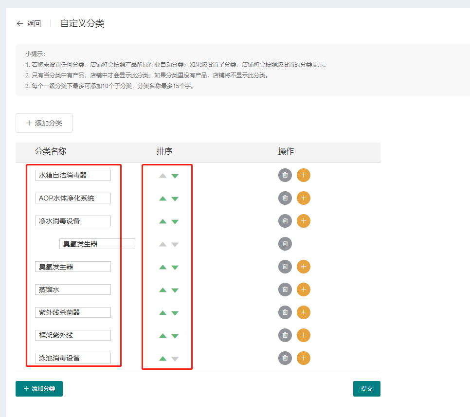 第一步:点击左侧“店铺装修”里面的“自定义分类”